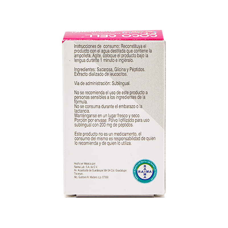Ingredientes: Sacarosa, Glicina y Péptidos. Extracto dializado de leucocitos. No se recomienda el uso de este producto a personas sensibles a estos ingredientes.