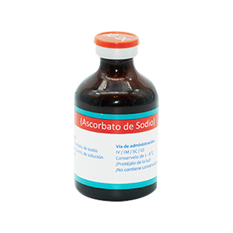 Porción por envase: 25 g de ascorbato de sodio disuelto en 50 mL de solución inyectable.